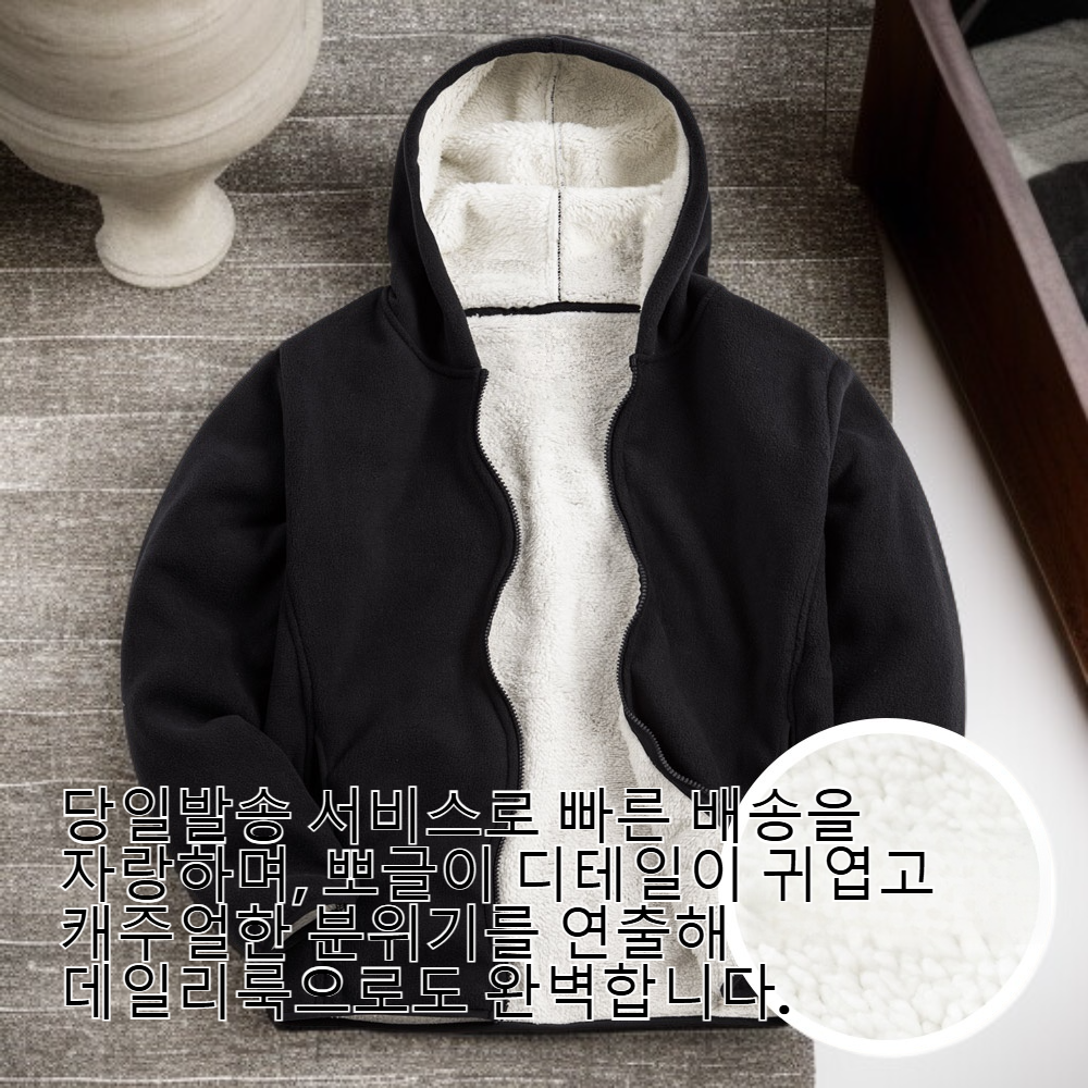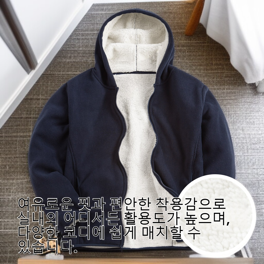 ● 남녀공용 디자인으로 누구나 스타일리시하게 착용 가능한 양털 후드 집업 자켓! 겨울철 따뜻함과 트렌디함을 동시에 잡으세요.